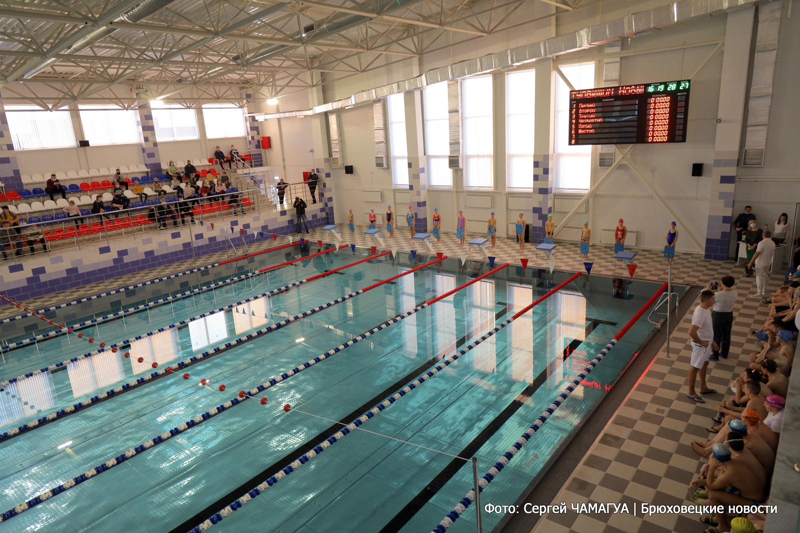Зрители были восхищены плаванием юной брюховчанки Софии Станиславской. Воспитанники детско-юношеской спортивной школы города Тимашевска показали мастер-класс по всем видам плавания: баттерфляй, брасс, исполнили самые быстрые стили — кроль на спине и груди, комбинированную эстафету. Громкими аплодисментами встречали зрители показательные выступления школы олимпийского резерва по синхронному плаванию из Краснодара.