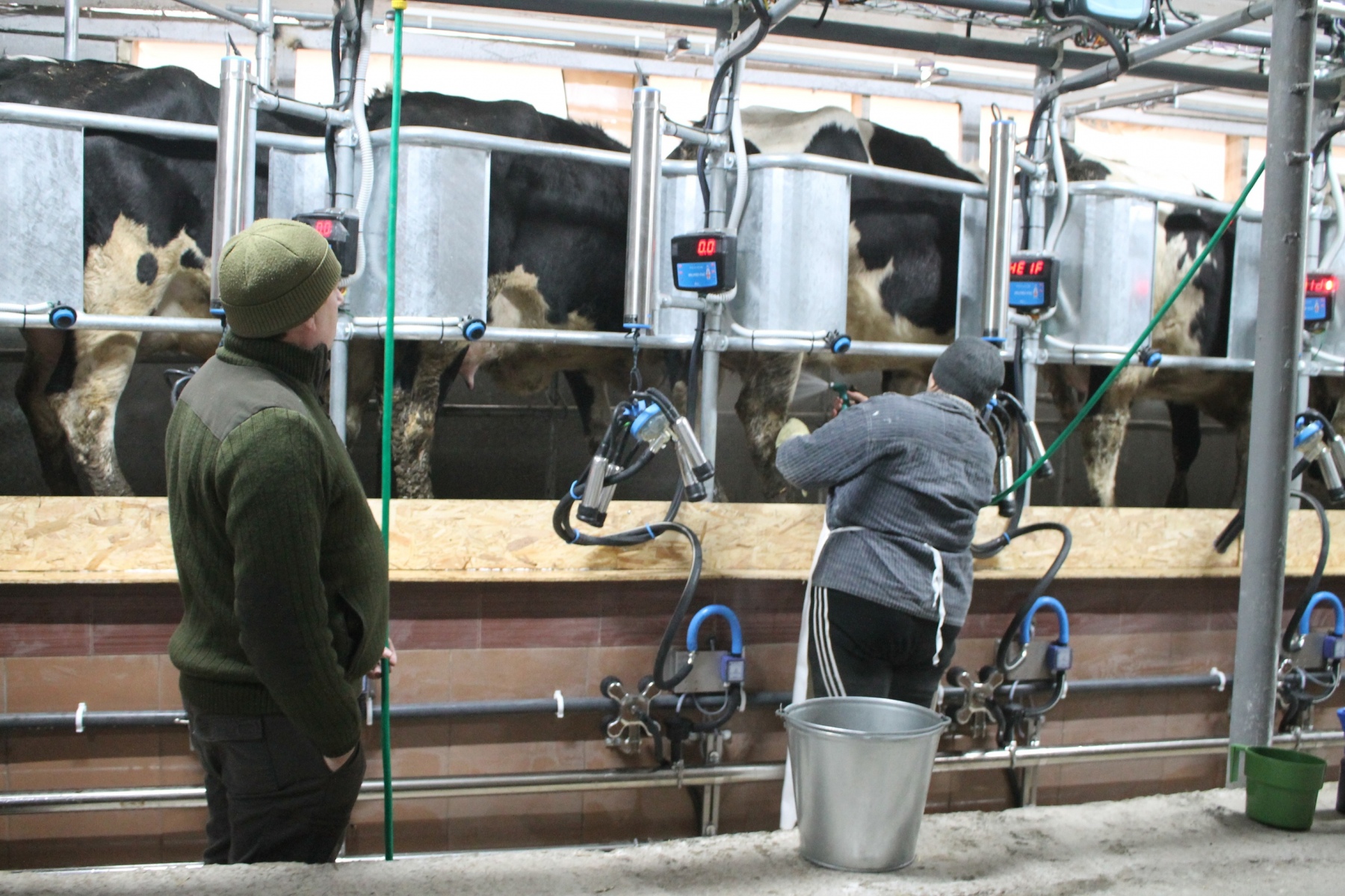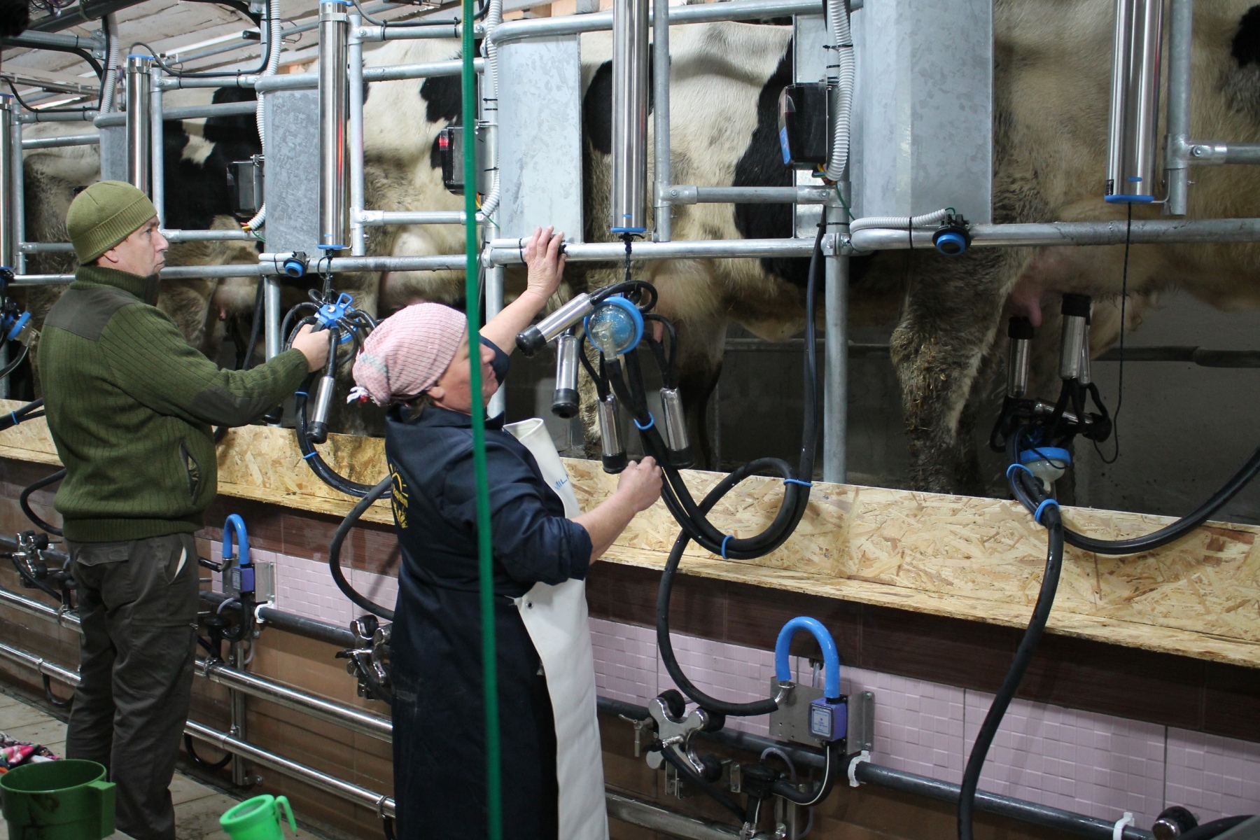 Далее работники фермы впервые перед гостями торжественного события опробовали новую доильную установку в действии.
