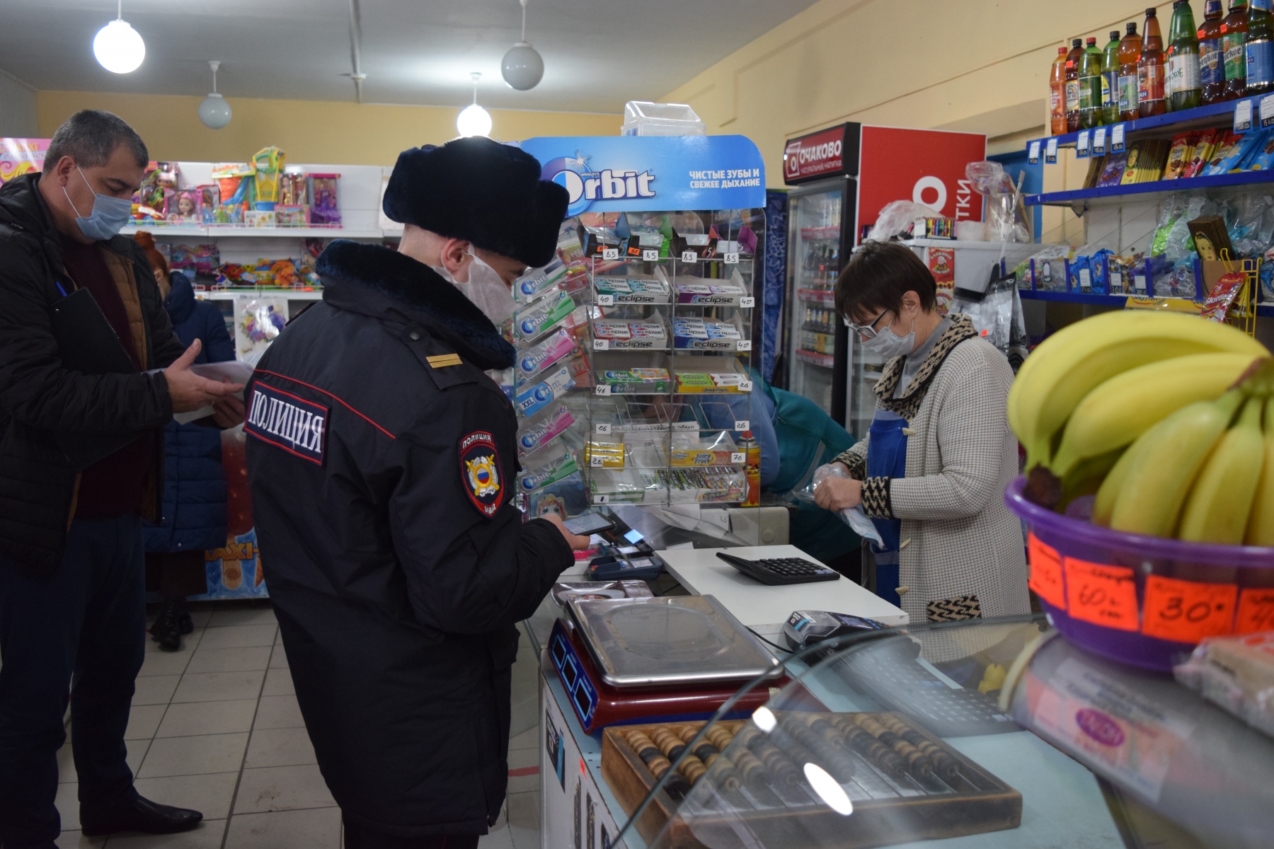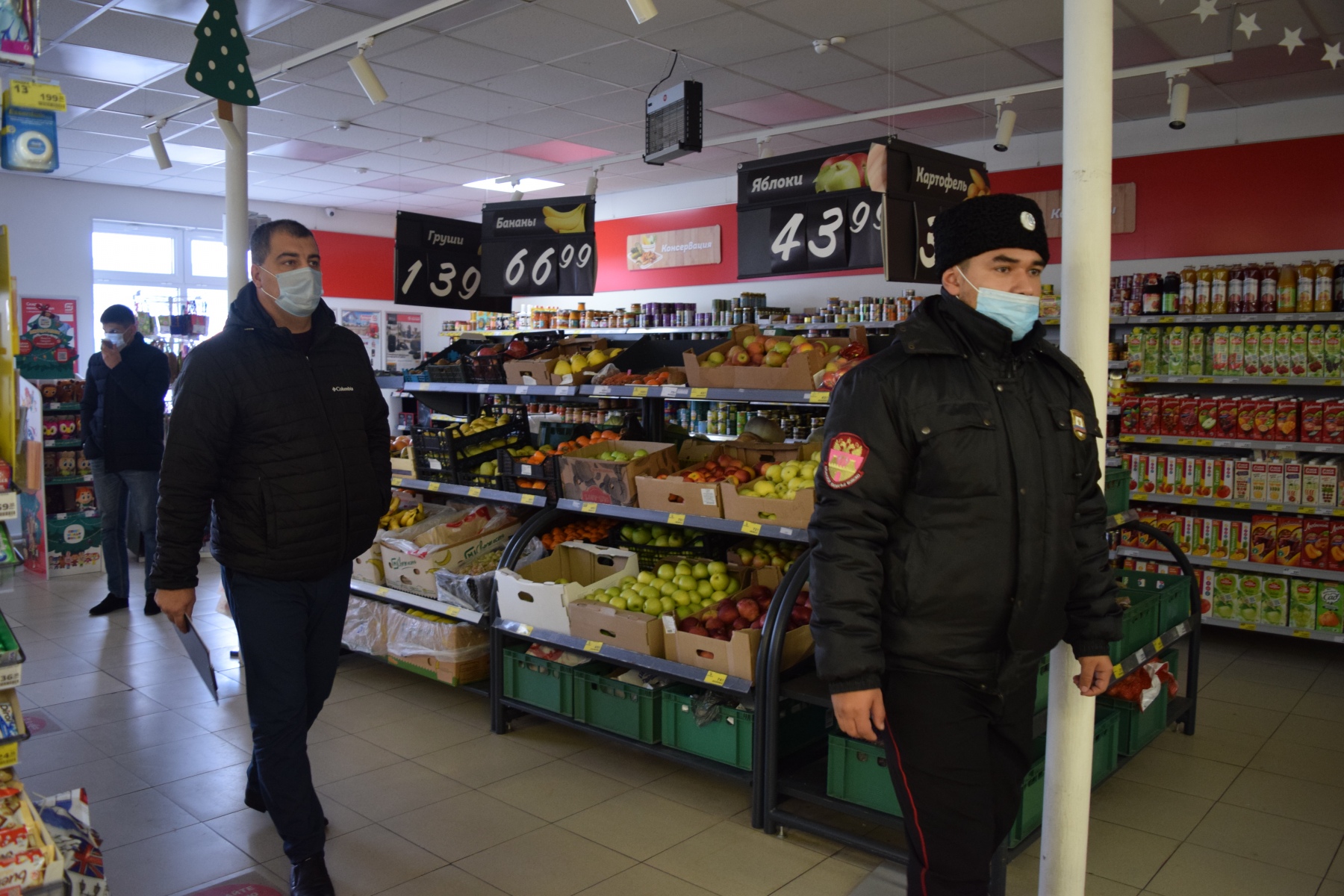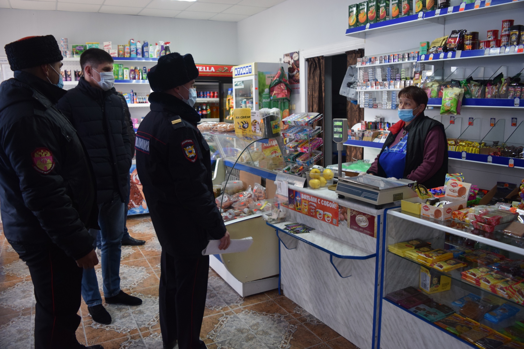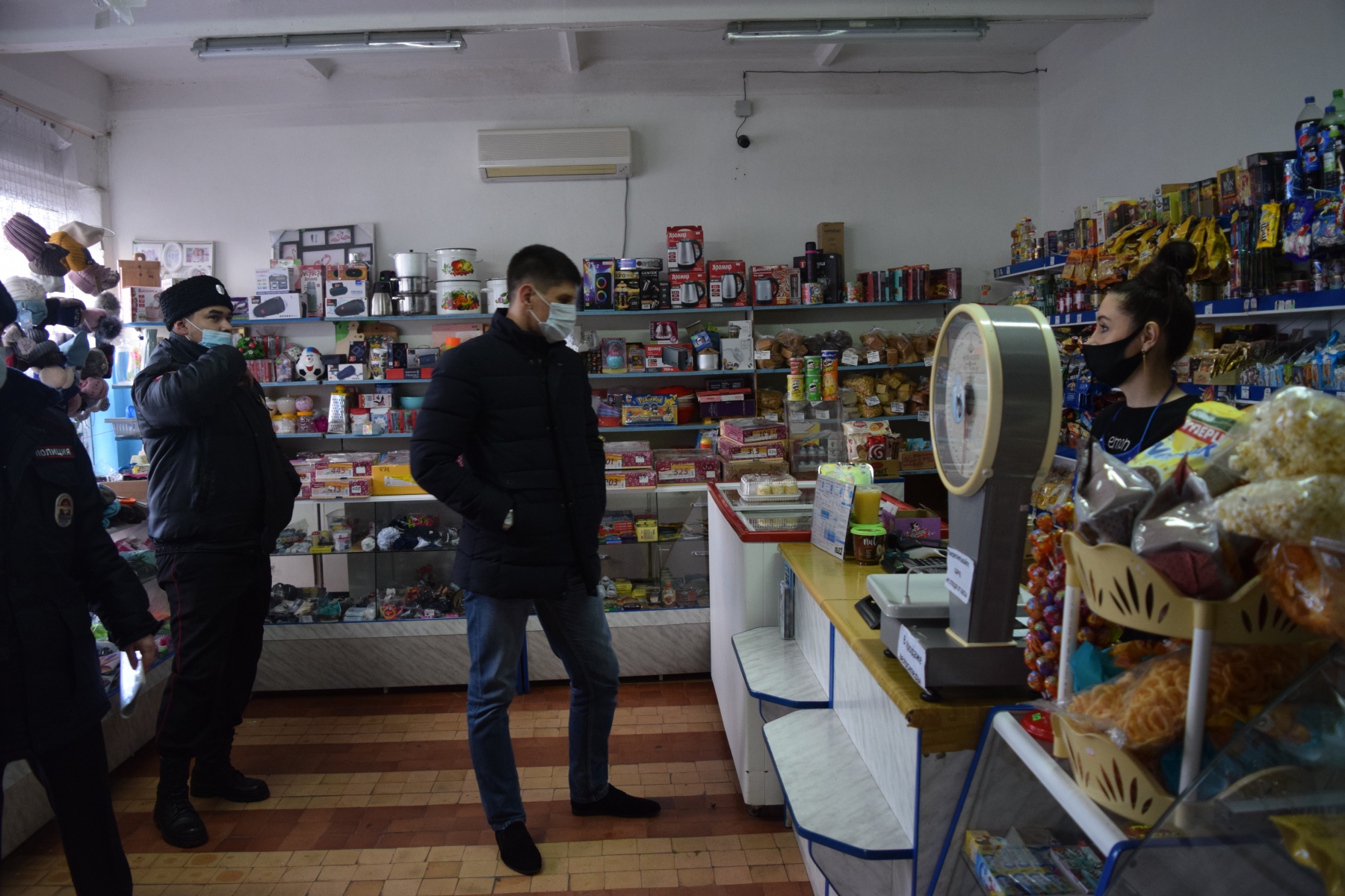 Во время пребывания нас в магазине, сюда вошло еще несколько людей без масок, правда увидев людей в форме, они тут же исправили ситуацию.