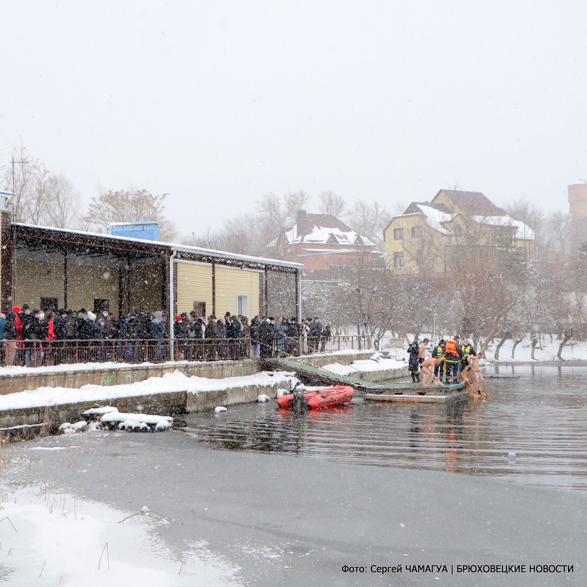 После причастия и освящения воды все желающие, а их было немало, прошли от храма до гребной базы на Левом Бейсужке к оборудованной по всем правилам купели. Здесь уже собрались жители населенных пунктов.