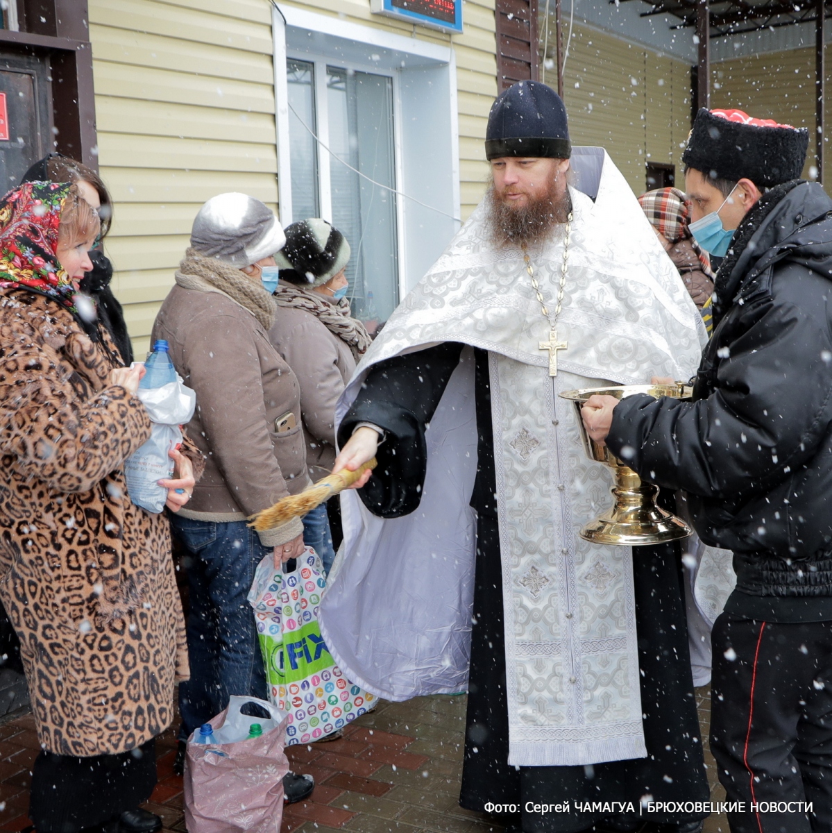 В почитаемый всеми праздник — Крещение Господне — брюховчане пришли в храм Святых апостолов Петра и Павла станицы Брюховецкой, чтобы освятить воду, помолиться о здравии своих родных и близких. Многие из них, как и положено, отстояли праздничную службу и причастились.
