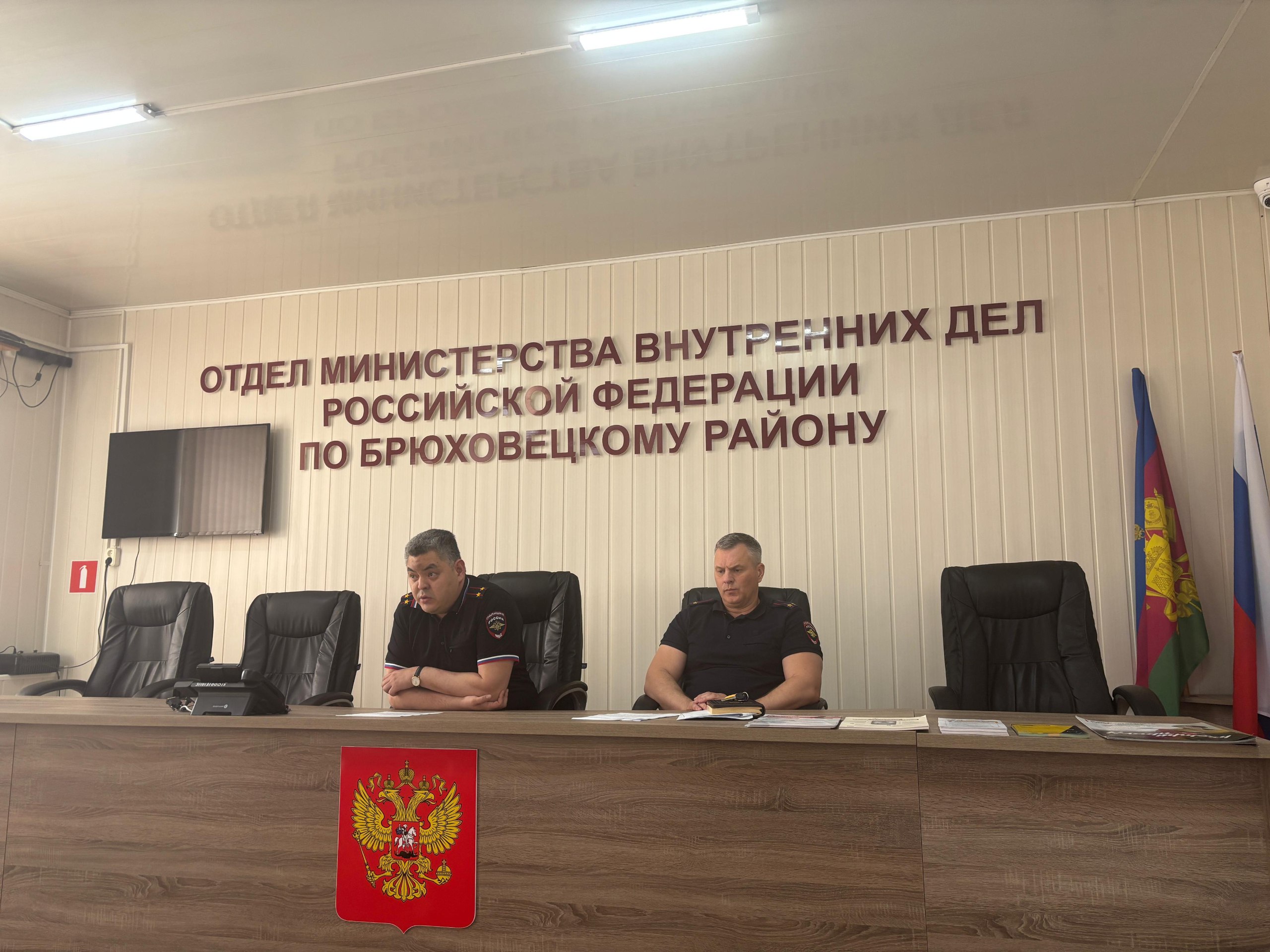 В Отделе МВД России по Брюховецкому району состоялся круглый стол с начальником Отдела подполковником полиции Юрием Ханаповым, начальником полиции подполковником полиции Алексеем Перлик, руководителями подразделений, представителем Общественного совета, а также с работниками брюховецких отделений банков.