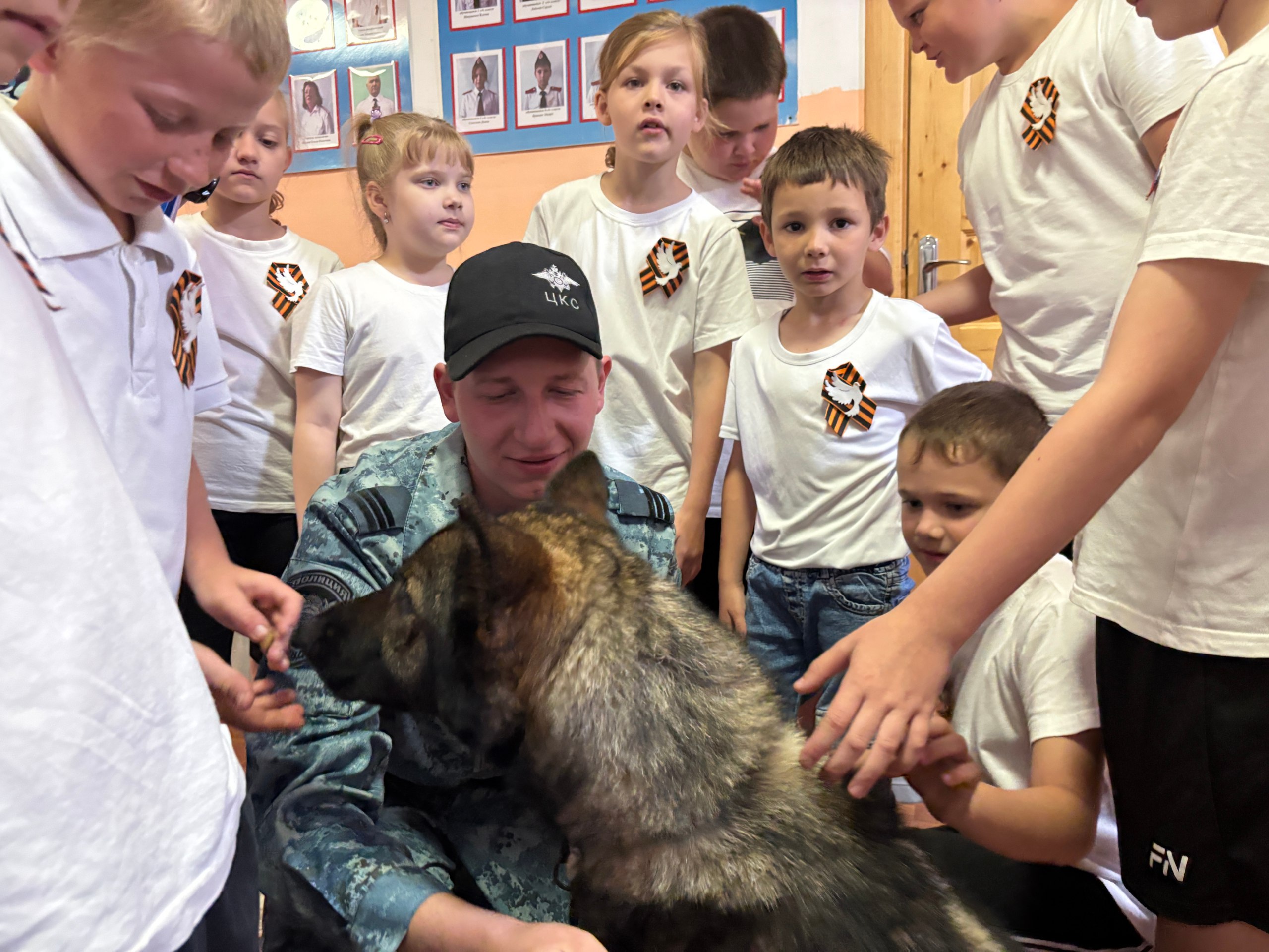 В завершение мероприятия ребята сфотографировались с овчаркой Истой и конечно же не упустили возможность погладить ее.