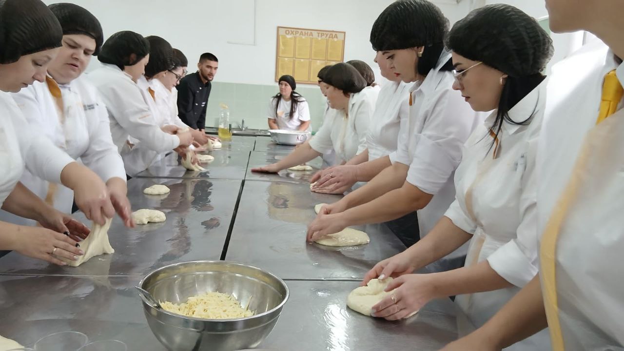Ближе к делу. Семнадцать советников под чутким руководством мастера учились выпекать любимую всеми пиццу. Антон Александрович предварительно замесил тесто, подготовил все ингредиенты для выпечки. Советники надевают халаты, шапочки — санитария на первом месте — без этого никак нельзя. Тесто Антон делит на 17 частей. Раздает каждому мягкие комочки. И пошла-поехала работа. «Ученицы» оказались понятливыми, все схватывали на лету. И вот аккуратные изделия в шкафах. Запах ароматный. А вкус? Ну конечно вкуснейший! Туда-сюда — и пиццы готовы. Антон дает высокую оценку кулинарным способностям советникам.