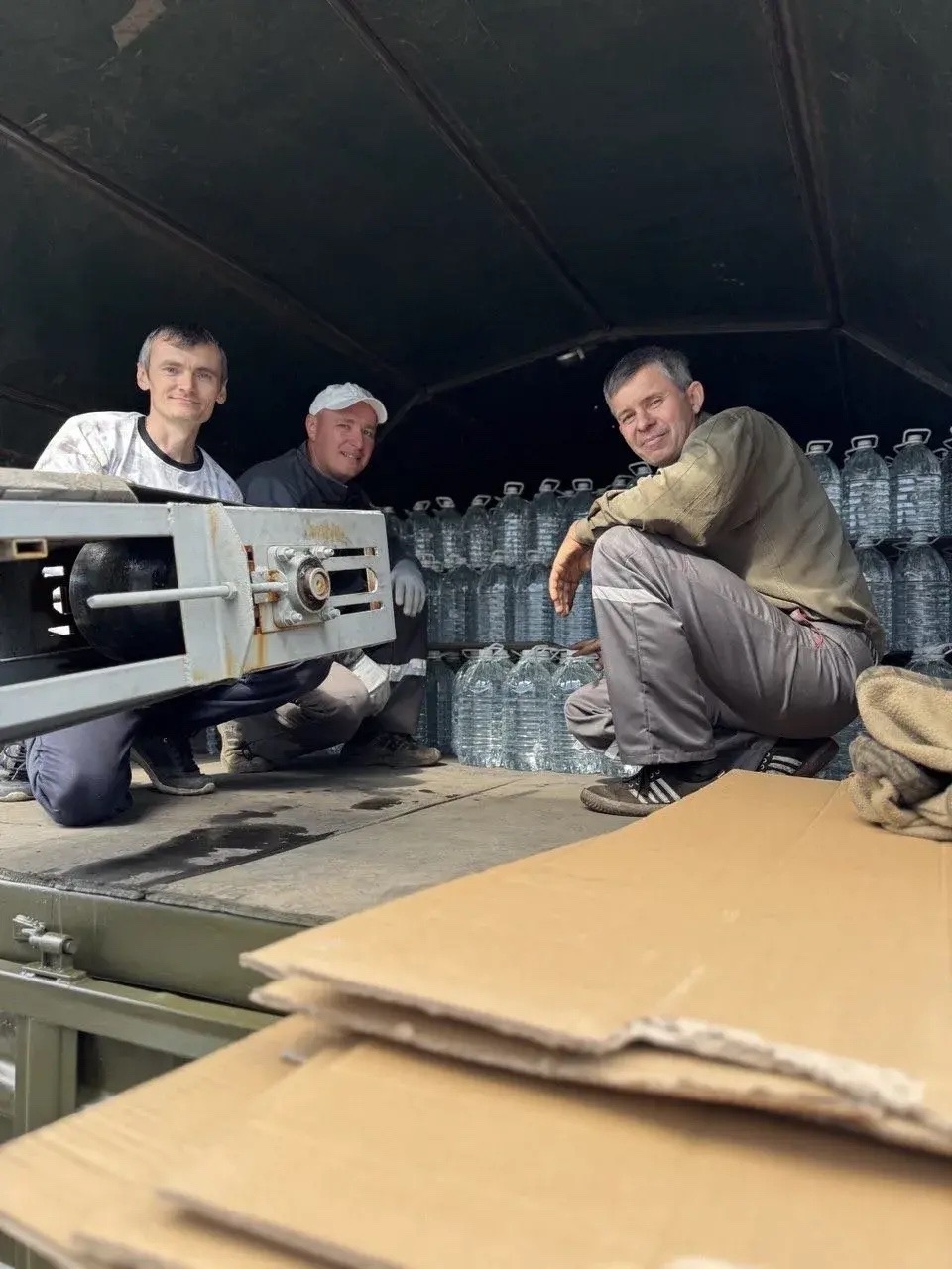 неравнодушными людьми, либо его забирают сами военные, а мы помогаем им загрузиться.