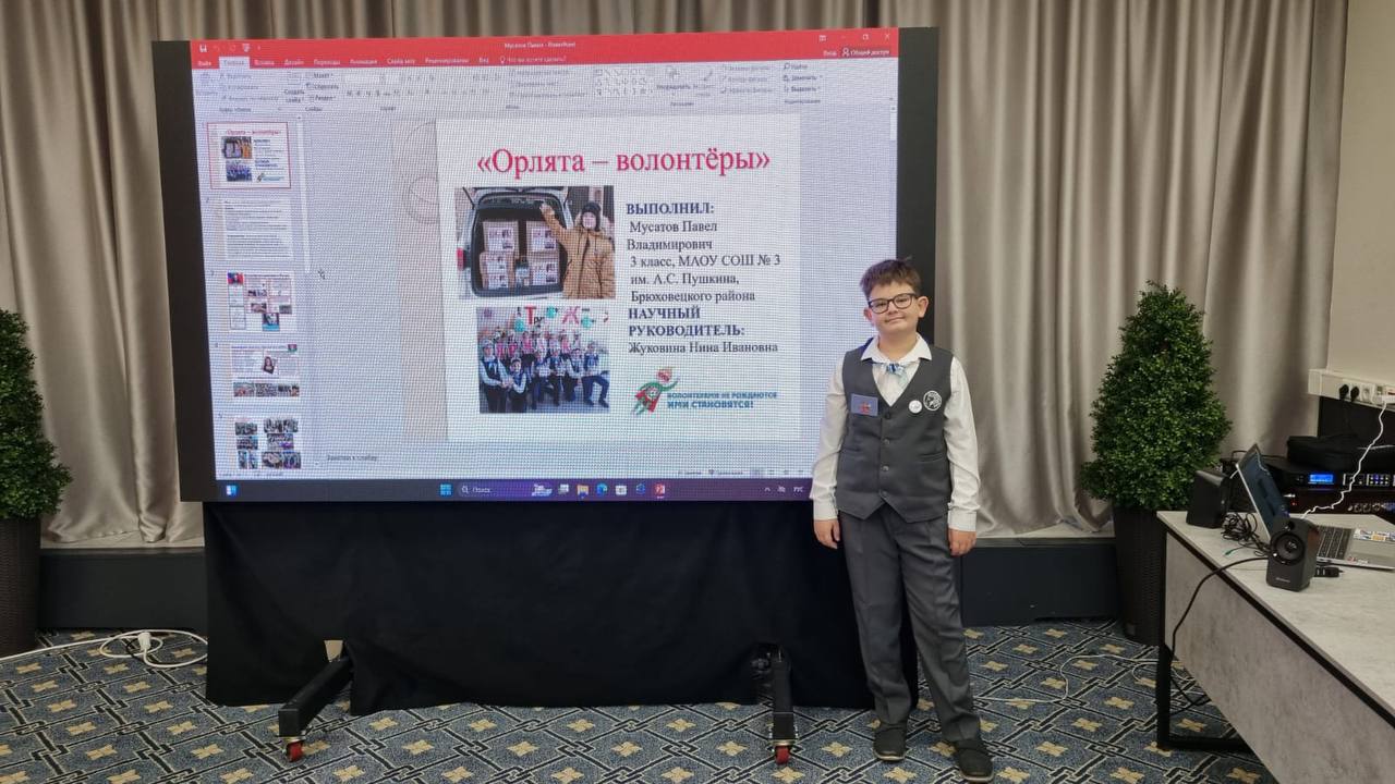 Ученик средней школы №3 Павел Мусатов достойно представил муниципалитет на Всероссийском конкурсе исследовательских и творческих работ «Мы гордость Родины». Конкурс, проходивший в два этапа, завершился очным форумом и торжественным награждением в Москве. Вместе со своим классным руководителем Ниной Жуковиной Павел разработал социально значимый проект «Орлята-волонтеры», посвященный добровольческой деятельности своих одноклассников. В работе он рассказал о патриотических акциях, благотворительных ярмарках и сборе гуманитарной помощи для участников СВО. Этот проект был признан лучшим в своей секции.